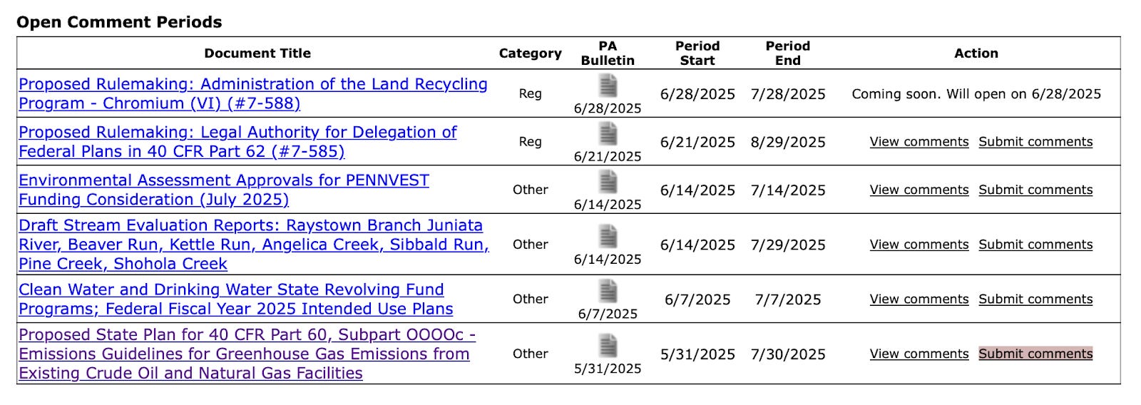 Public Comments in Pennsylvania to Fight Methane Emissions